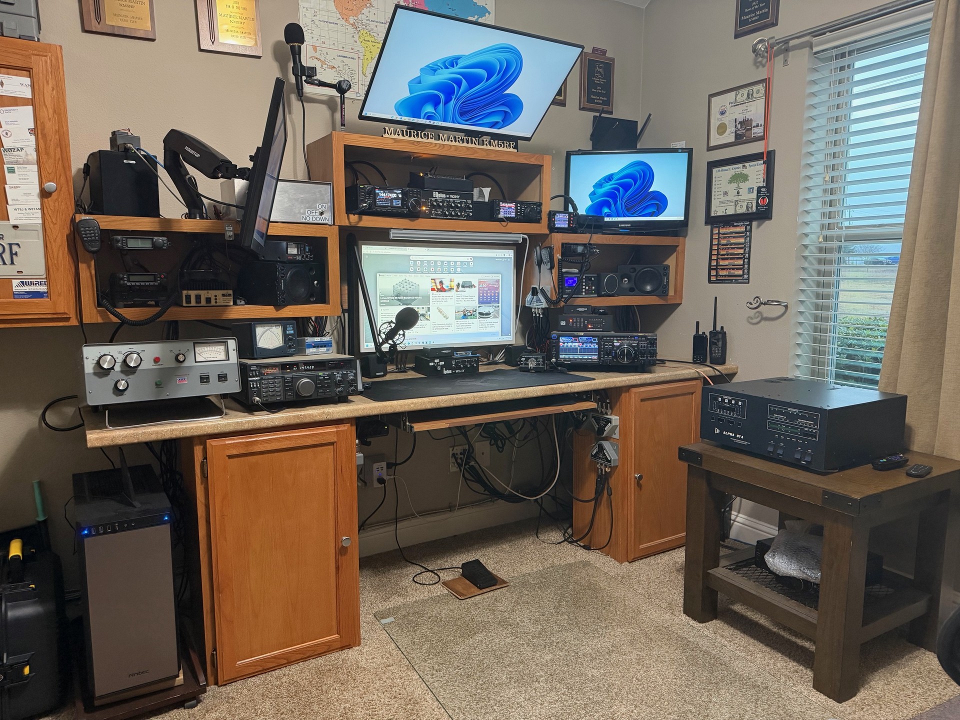The back seat of the truck when cold or windy. Yaesu FT-710, 50 amp LIPO4 Battery,Heil Headset and footswitch. And always keep a pen and notebook for the pileup.